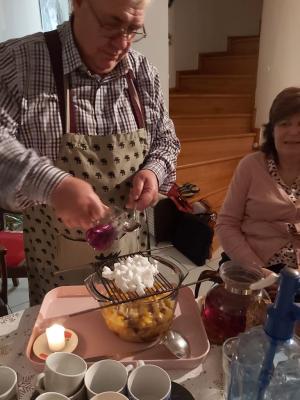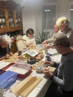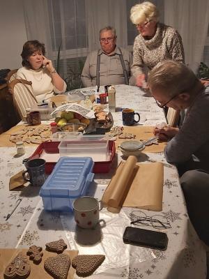 Mézeskalács díszítgetés, ajándékcsomagolás, közben az adventi vásár feladatainak egyeztetése - volt teendő bőven. Klubelnökünk Barta Sándor különleges krampampulival kényeztette a lelkes kis csapatot.
