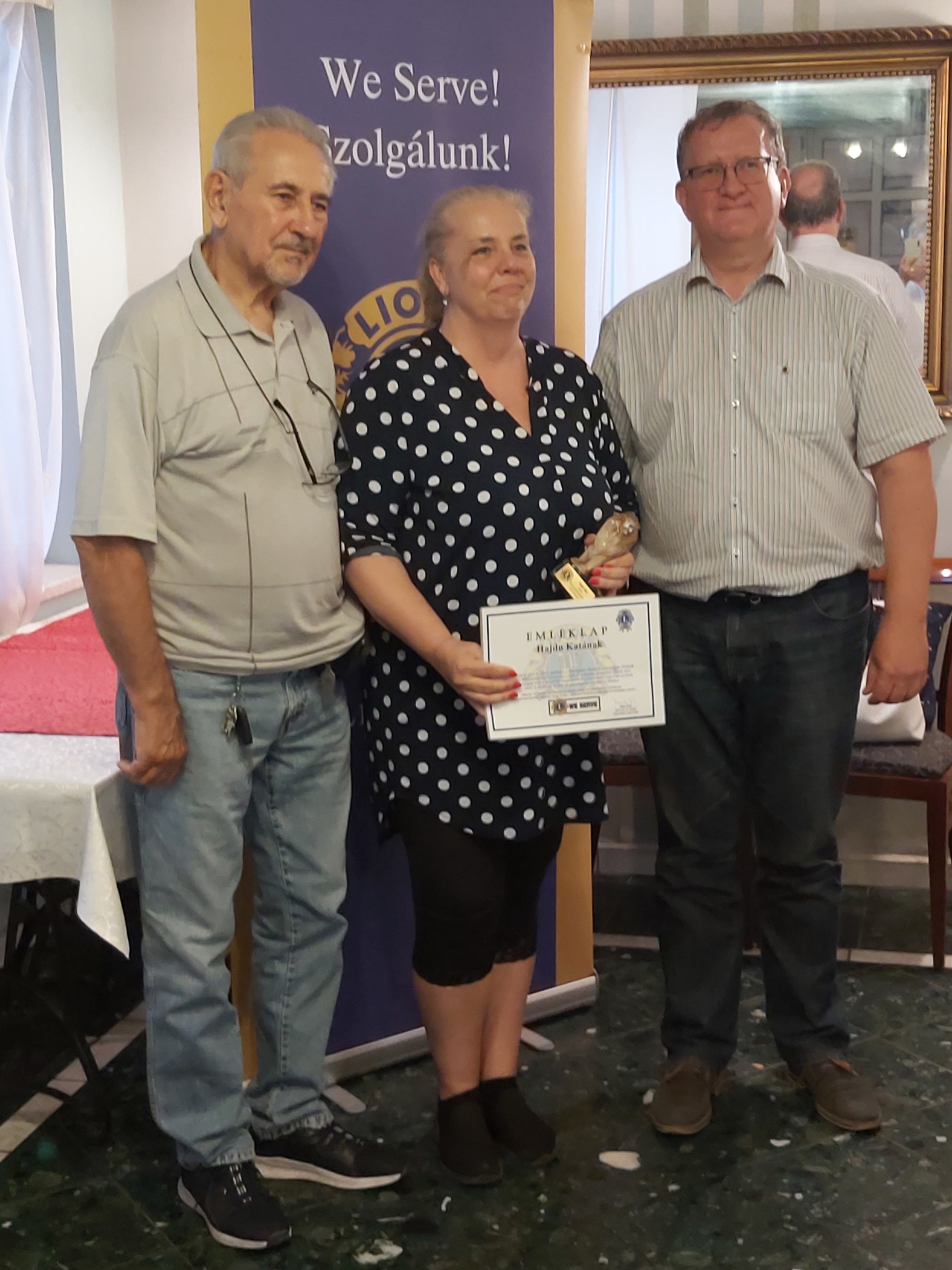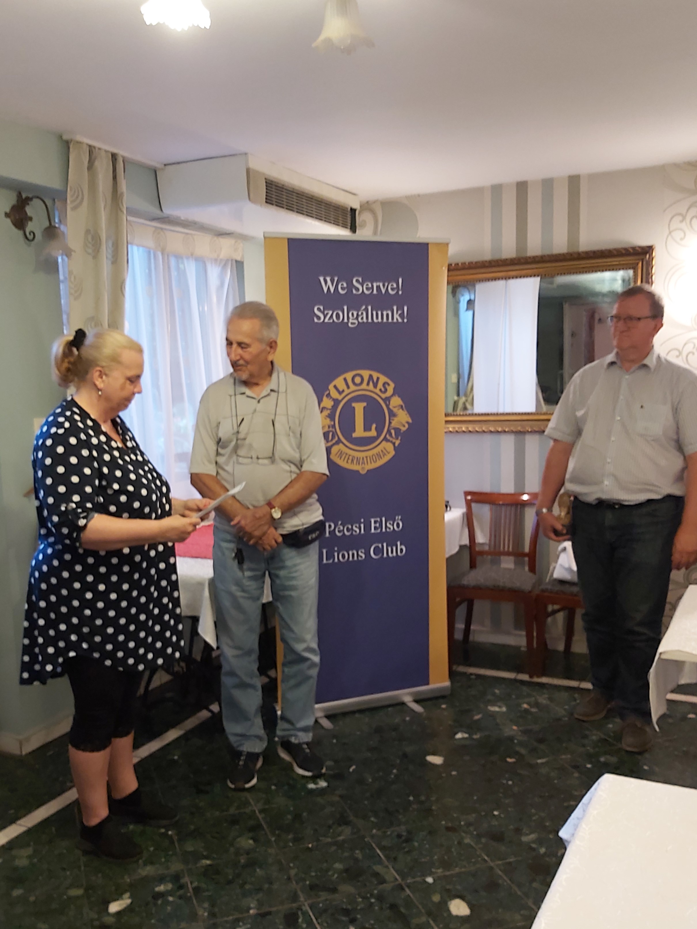 Hajdu Kata sikeres és eredményes lions évet kívánva búcsúzott a klubtól, és eredményes jószolgálati munkát kívánt a tagságnak és az új elnöknek, Baán Bélának, aki már több ízben vállalta és képviselte a pécsi klubot.