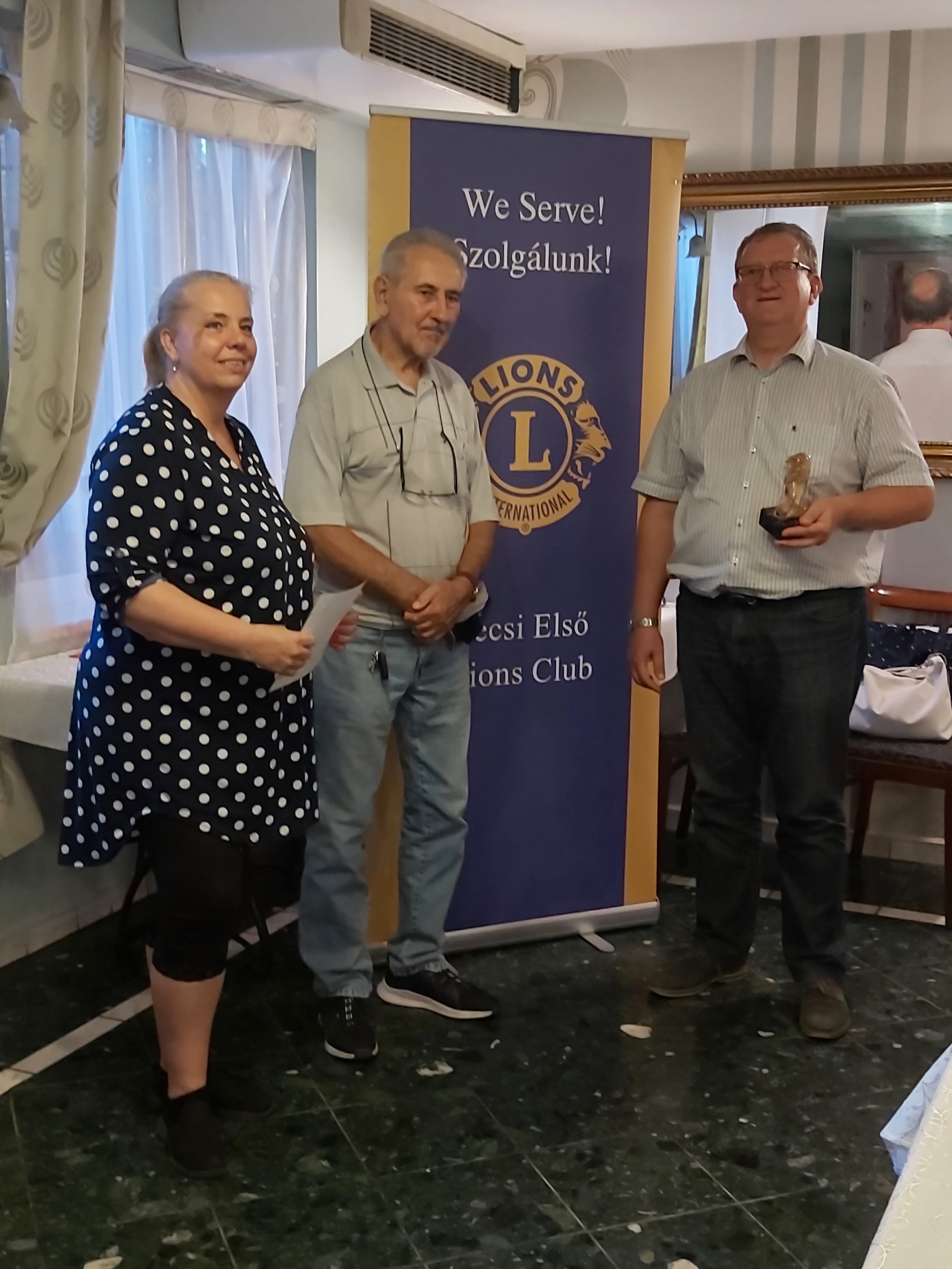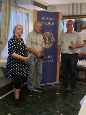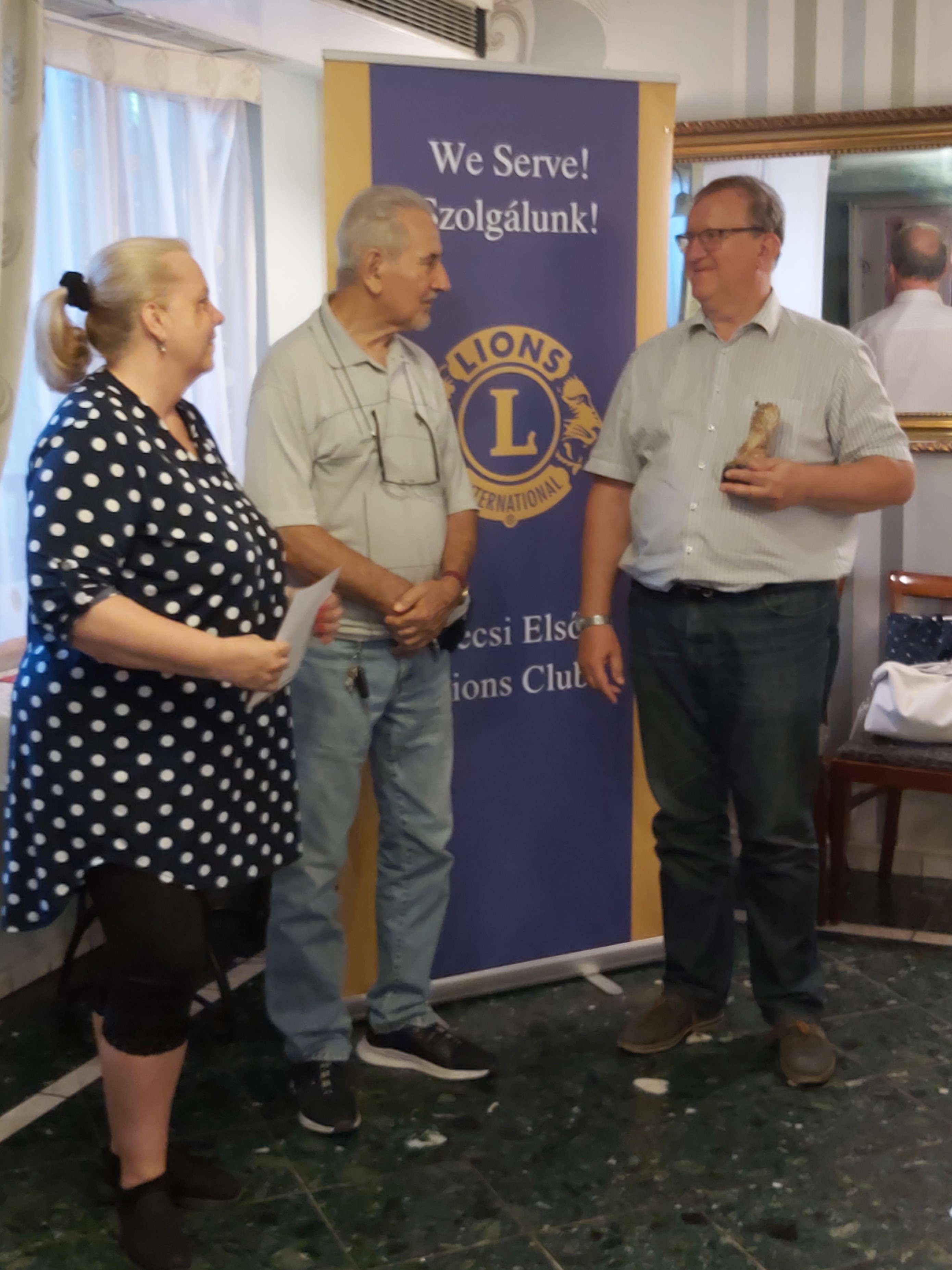 Az elköszönő elnök asszony elnöki munkáját egy zsolnai porcelán oroszlán szoborral és emléklappal köszönte a Pécsi Első Lions Club tagsága, dr. Farkas Zoltán alapító tag elköszönő szavai kíséretében.
