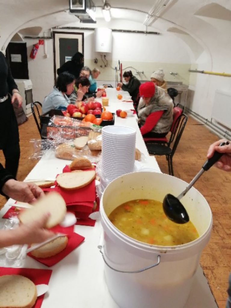 A meleg étel remek időzítéssel, forrón pontban a szálló nyitásakor este 18 órakor a helyszínen várta a hajléktalan asszonyokat. A szakácsok remek munkát végeztek! Többen repetáztak, hálás szívvel köszönték és Isten áldását kérték a segítőkre.